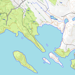 Loiva kallioranta, kallioinen maasto, muutama telttapaikka (Lähde: Sajan omat havainnot 2024)
